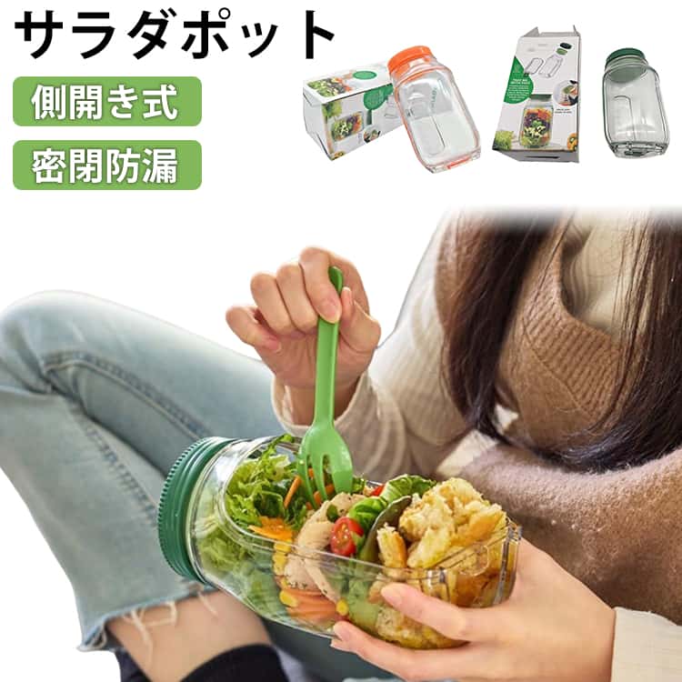 側開き式 サラダジャー 家庭用 サラダジャー 取り外し可能な蓋 サラダポッド容器 屋外 旅行 パーティー ランチ用 保存容器