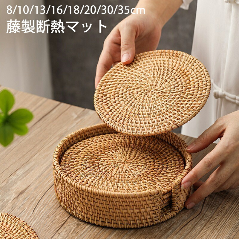 丸型ランチョンマット ラウンド 断熱 マット 直径8 10 13 16 18 20 30 35cm 円形 コースター 藤製 おしゃれ 北欧 洗える 耐熱 撥水 防汚 手編み ラタン 食 テーブルマット