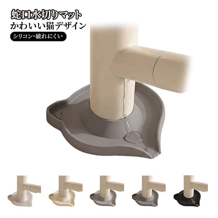 水切りマット 水漏れ対策 2個セット シリコン 蛇口カバー シンクカバー 蛇口排水マット キッチン バスルーム 蛇口汚れ防止カバー かわいい 猫モチーフ 洗面台