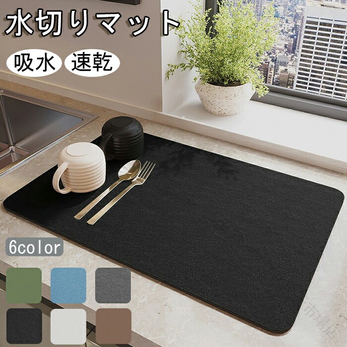 水切りマット 珪藻土 吸水マット キッチン 大判 ソフトタイプ 食器乾燥マット 抗菌 珪藻土マット 速乾 台所用品 洗面所マット 滑り止め加工付き 食器収納