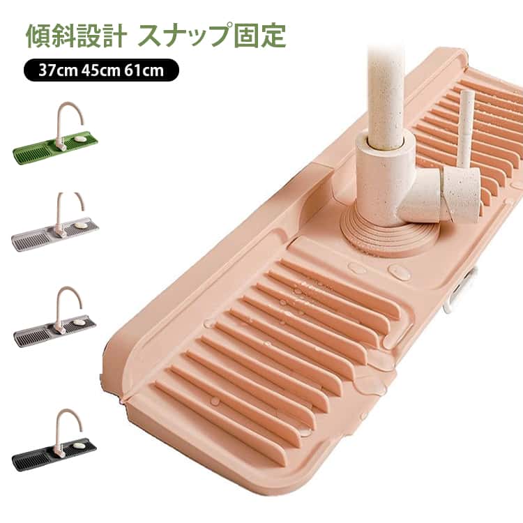 61cm 37cm 水切りマット スポンジ置き 6度傾斜 蛇口水切りマット 大判 ロング 排水マット 水漏れマット 速乾 蛇口周り スナップボタン開閉 マット後方折り畳み可能 蛇口にぴったり 45cm