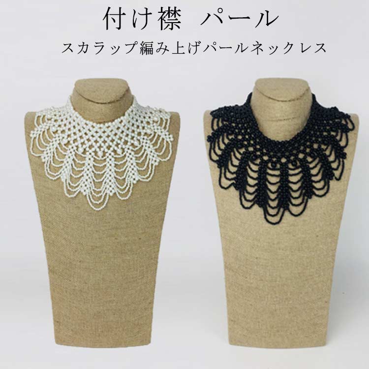 スカラップ編み上げパールネックレス 付け襟 パール フェミニン 華やか 上品 レース 襟 編み上げ フォーマル セレモニー 結婚式 二次会 披露宴 レトロ クラシック ガーリー お呼ばれ