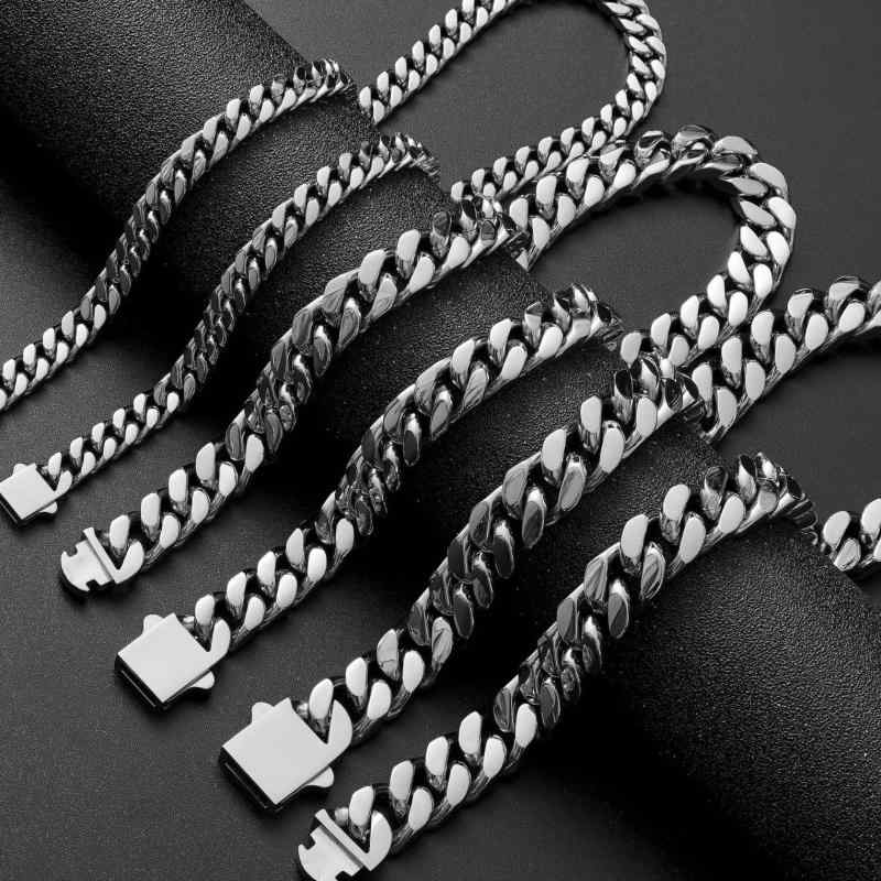 ネックレス 男女兼用 ステンレス製 スクエアバックル キューバンチェーン 極太 マイアミチェーン ストリート ヒップホップ 高級感 色褪せしにくい シンプル 個性的 シルバー 錆びにくい