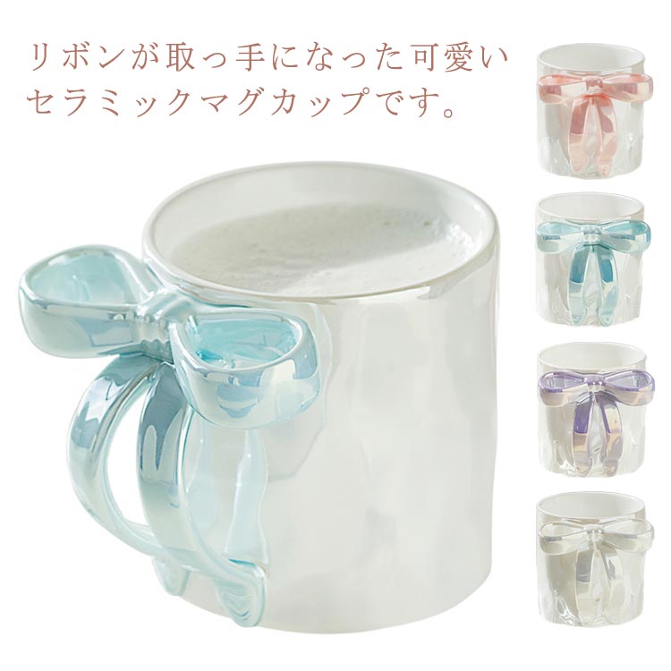 リボン取っ手の可愛いセラミックマグカップ 350 耐熱仕様 コーヒーや紅茶に最適 ギフトにぴったり