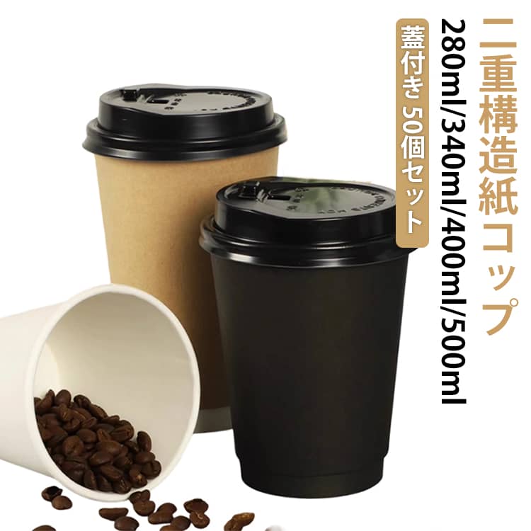 50個セット 蓋つき 紙コップ 使い捨て コーヒー カップ ペーパーコップ 蓋付き コップ 耐熱 使い捨てコップ 二重断熱 お茶カップ 50個 新生活