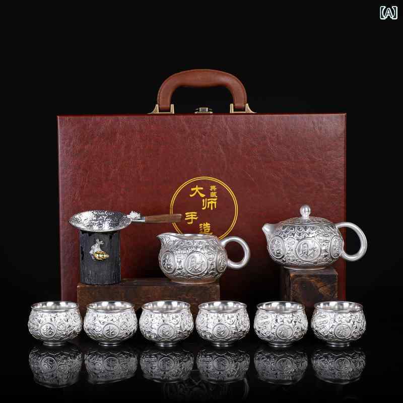 銀製急須 純銀999 高純度シルバー 手作り ハンドメイド 職人技 中国茶器 茶道具 辰年 龍 縁起物 開運アイテム ギフト 贈答品 ビジネス 記念品 高級感 本格派 開業祝い