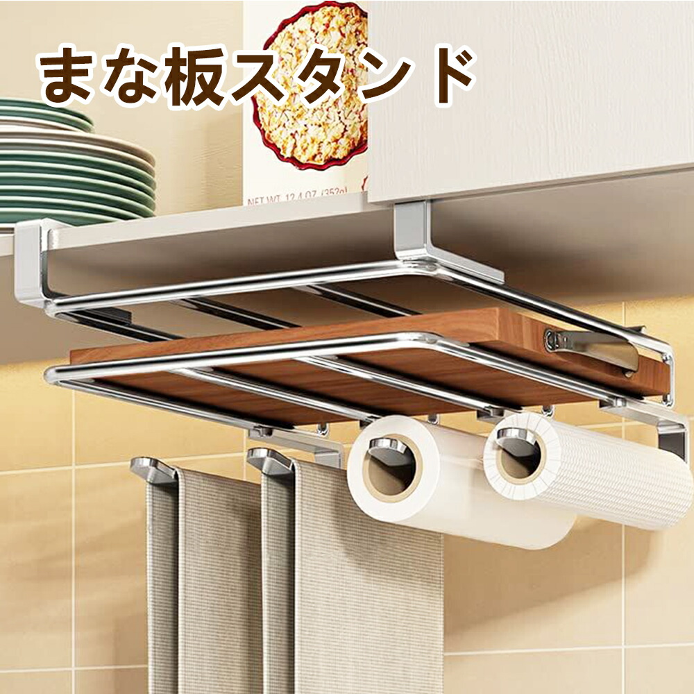 まな板スタンド 吊り下げ収納 キッチンペーパーホルダー 多機能 キッチン 収納 まな板 鍋蓋 スタンド キッチン用具 まな板置き ステンレス製 吊り戸棚下ラック 吊り下げラック キッチンツールスタンド
