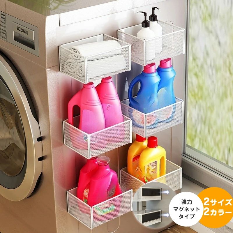 マグネット収納 バスケット 隙間収納 ランドリー キッチン バスルーム 浴室 お風呂場 壁収納 バスラック 洗濯機 横 冷蔵庫 スペース 収納 ラック 棚 浮かせる 強力 錆びない 黒 おしゃれ