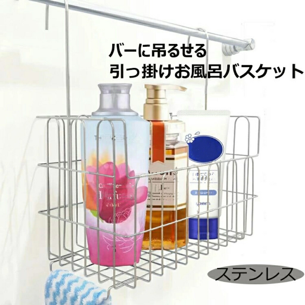 引っ掛けお風呂バスケット ステンレス 吊り下げ 引っかけ 引っ掛けおバスケット お風呂収納 バーに吊るせる ハンギングバスケット ワイヤーバスケット ステンレス製 吊るせるフックお風呂用