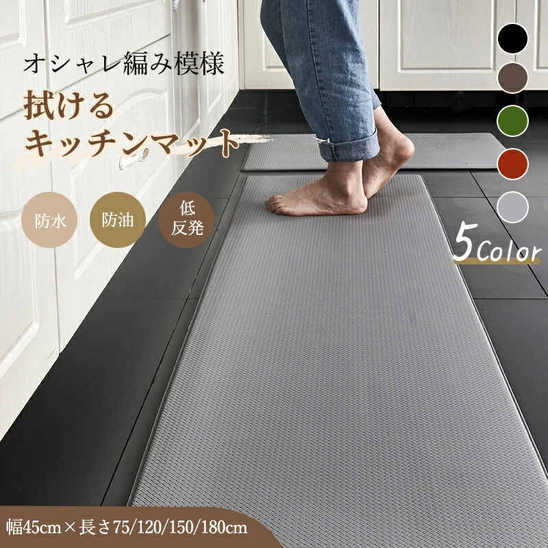 キッチンマット 拭ける おしゃれ 北欧 低反発 クッション 足腰 疲れにくい PUレザー PVC 防水 防油 抗菌防臭 滑り止め 厚さ8mm 台所マット 玄関マット 防水マット キチ 洗面台
