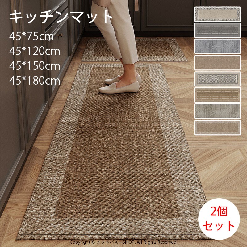 2点セット 珪藻土 キッチン カーペット ラグ 洗える 防水防油 吸水速乾 滑り止め ロング キッチンマット 玄関マット フロアマット キッチン用品 じゅうたん 長方形 おしゃれ 北欧 敷物