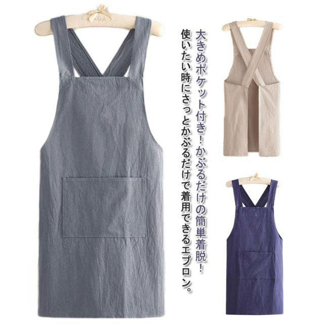 送料無料 かぶるだけの簡単着脱 ガーデニング 居酒屋 美容院 花屋 オシャレ エプロン コットン 被るタイプエプロン ワークエプロン 作業エプロン