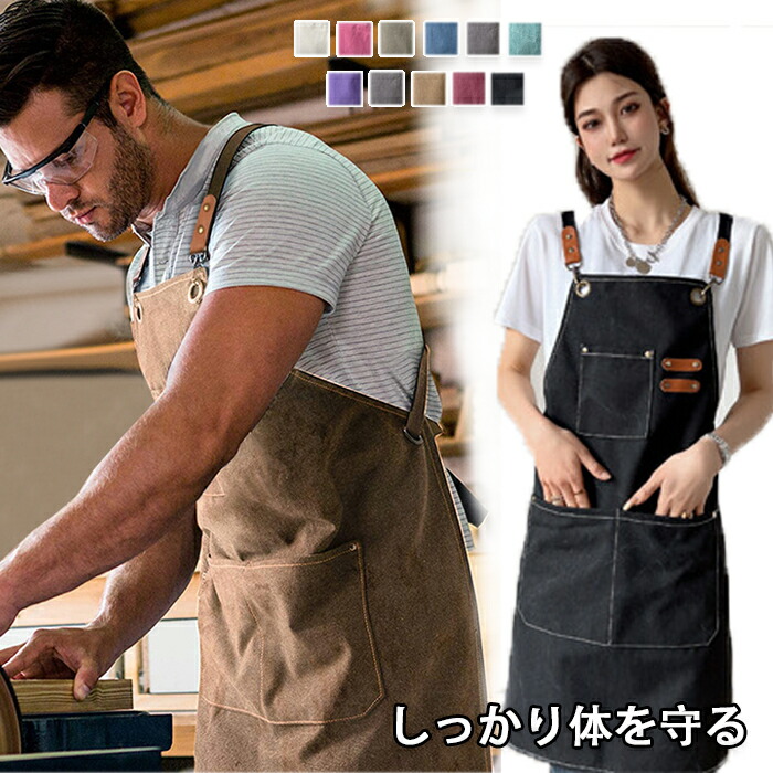 エプロン キャンバス 前掛け カフェエプロン 作業用 職人 フリーサイズ 男女可 12色 美容師 ガーデニング シェフ バー メンズエプロン 大きいサイズ 親子 子供タイプ ストラップ調整可能