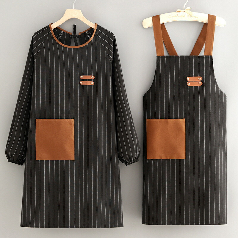 かっぽうぎ エプロン 2着セット 袖付き長袖 ロング丈 オシャレ 可愛い 料理 家事 プレゼント 綿 おしゃれ レディース かわいい カフェ 北欧風 ポケット付き 大きいサイズ