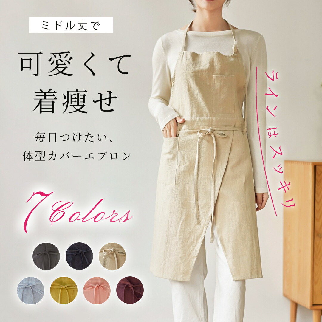 レディース エプロン リネン おしゃれ 保育士 大きいサイズ かぶり コットン 無地 オシャレ ロングエプロン ナチュラル 飲食業 業務用 サロン 料理教室