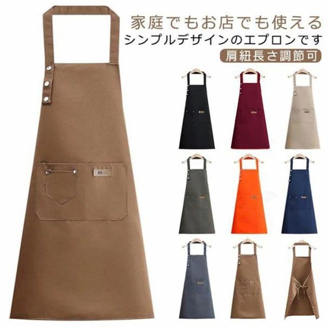 肩紐長さ調節可 メンズ 位置調整可能 エプロン 防水 水をはじく素材 おしゃれ レディース 撥水加工 スナップボタン ポケット付き