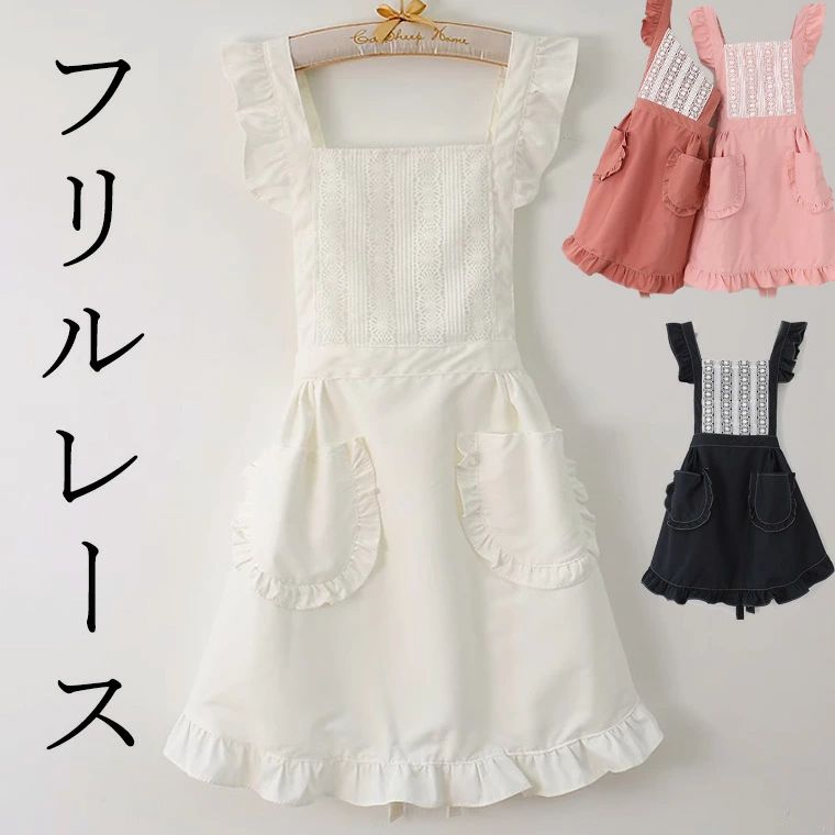 プレゼント 付き レース フリル 彼女 保育士 フリーサイズ ワンピース アイドル 誕生日 かわいい メイド リボン エプロン オシャレ 可愛い バースデー バースデープレゼント かわ エプロンドレス