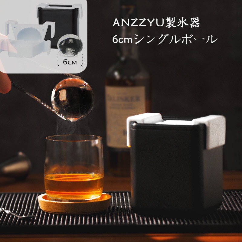 アイスボールメーカ ANZZYU 透明氷メーカー アイスメーカー 製氷 製氷器 製氷機 丸氷 丸い氷 超ビッグサイズ 透明まる氷 6cm 大きい アイスボール 透明氷 家飲み 酒 バー 製 ウィスキー
