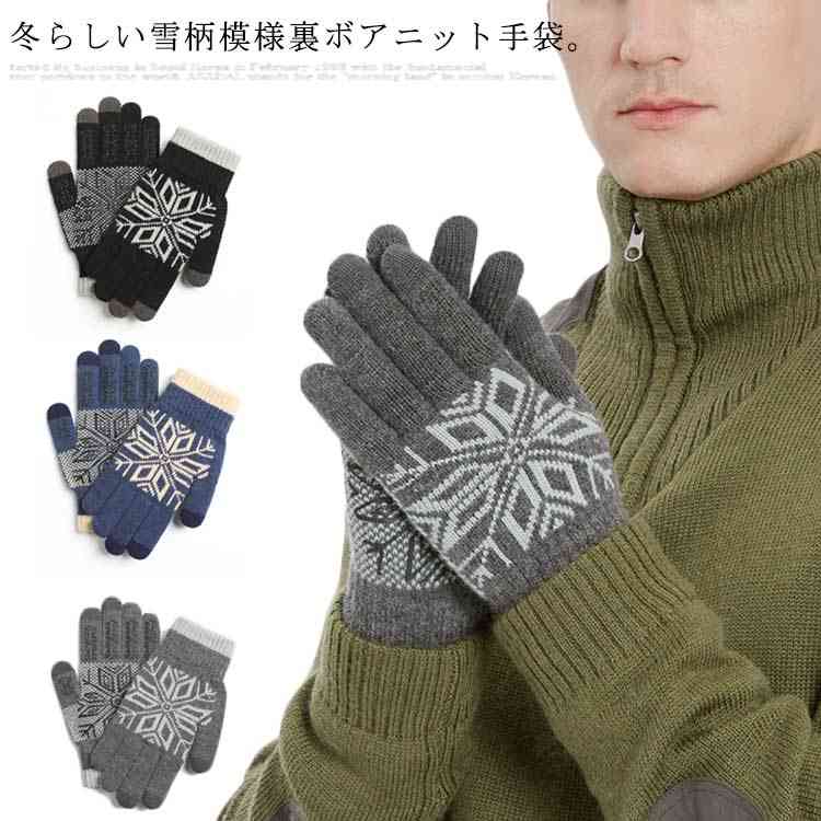 手袋 レディース メンズ ニット 裏ボア手袋 男女兼用 リブニット スマホ手袋 グローブ 裏ボア ノルディック柄 雪柄 厚手 防寒対策 あったか 暖かい かわいい 通勤 通学 柔らかい