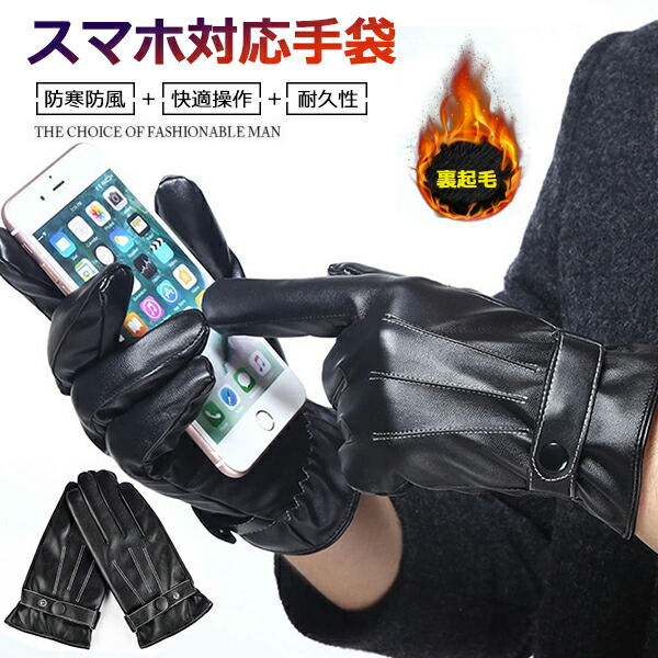 手袋 メンズ レザー スマホ対応 裏起毛 レザーグローブ 革手袋 フェイクレザー 革グローブ 液晶タッチ タッチバネル対応 秋冬用