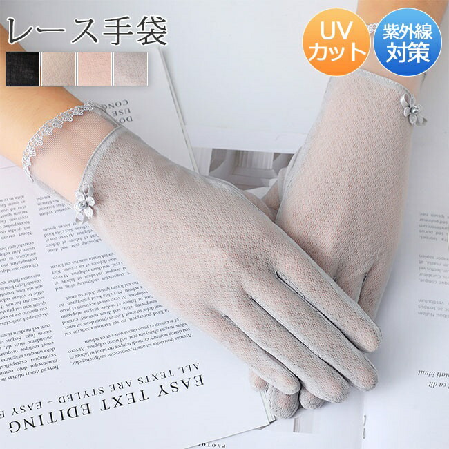 手袋 ショート カット スマホ対応 滑り留め 夏用 薄手 五本指 冷感 クール 速乾 日焼け防止 ウィルス対策 フラワー 花柄 レース メッシュ素材