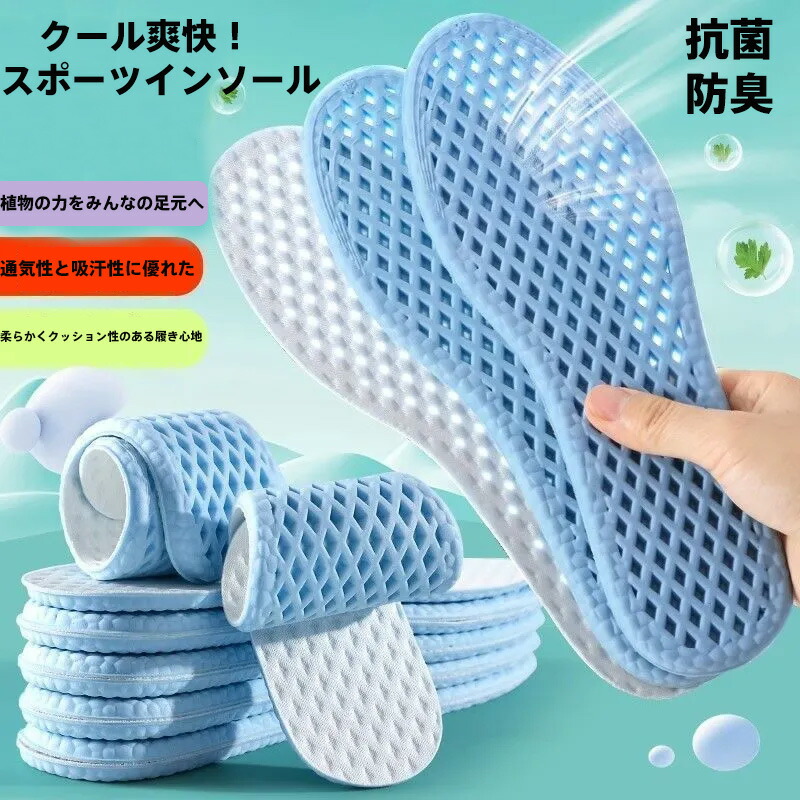 スポーツ&ビジネス兼用 抗菌防臭インソール 通気性抜群・吸汗速乾 自由裁断可能 柔らかクッション性