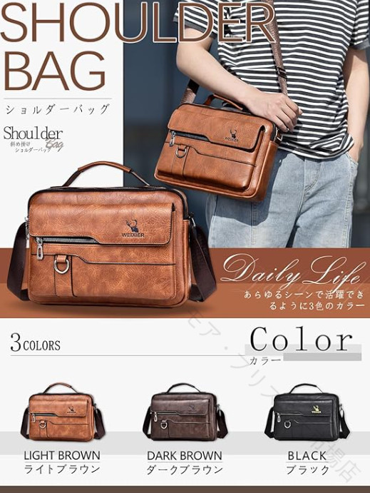 防水仕様で耐久性に優れた革使用のメンズショルダーバッグ 軽量で大容量だから通勤通学や普段使いに最適