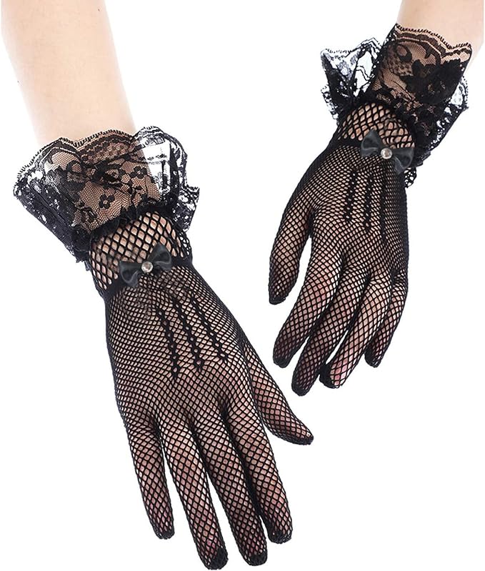 手袋 レディース レース メッシュ グローブ リボン ネット 薄手 ショート レース手袋 紫外線 日焼け防止 uvカット 夏 結婚式 成人式 運転 女性用