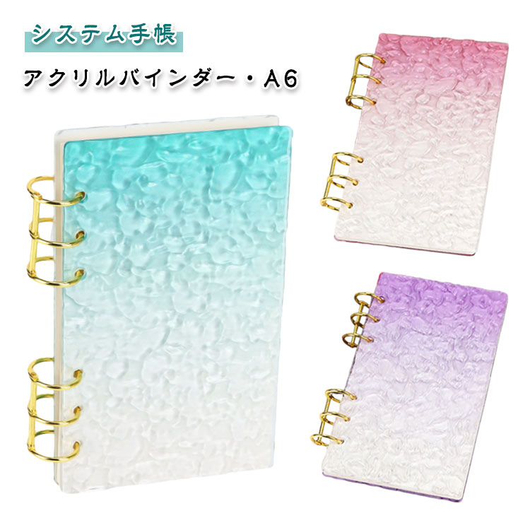 システム手帳 アクリルバインダー A6 韓国 透明 クリア バインダー 6穴 女の子 手帳 かわいい コラージュノート コンパクト手帳 カスタマイズ手帳 推し 推し活グッズ オタ活グッズ プ ファイル