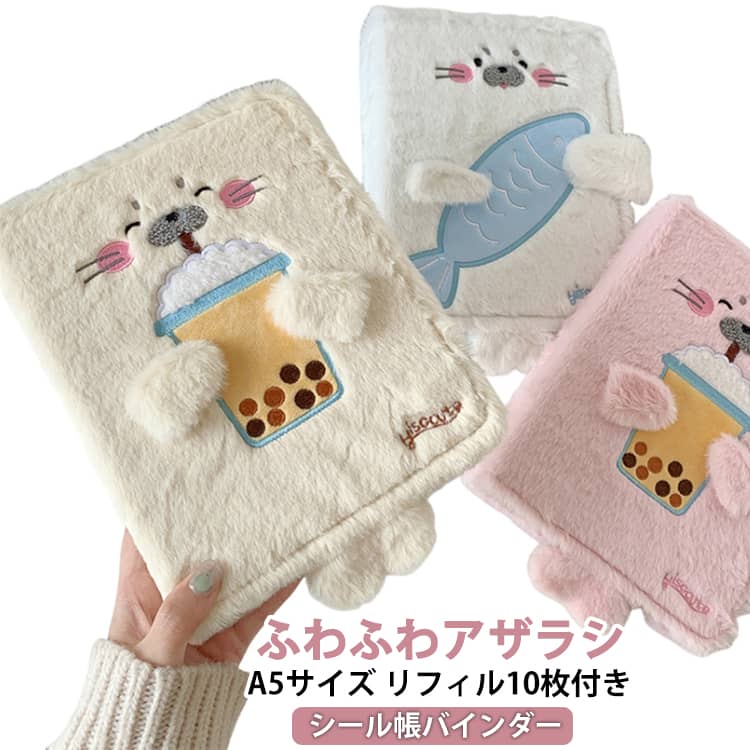 シール帳 シールバインダー ふわふわ アザラシ 動物 A5 6穴 貼ってはがせる シール台紙 もふもふ 可愛い バインダー 女の子 シール集め シール収納 手帳 推し活 トレカ 収納 ファイ グッズ