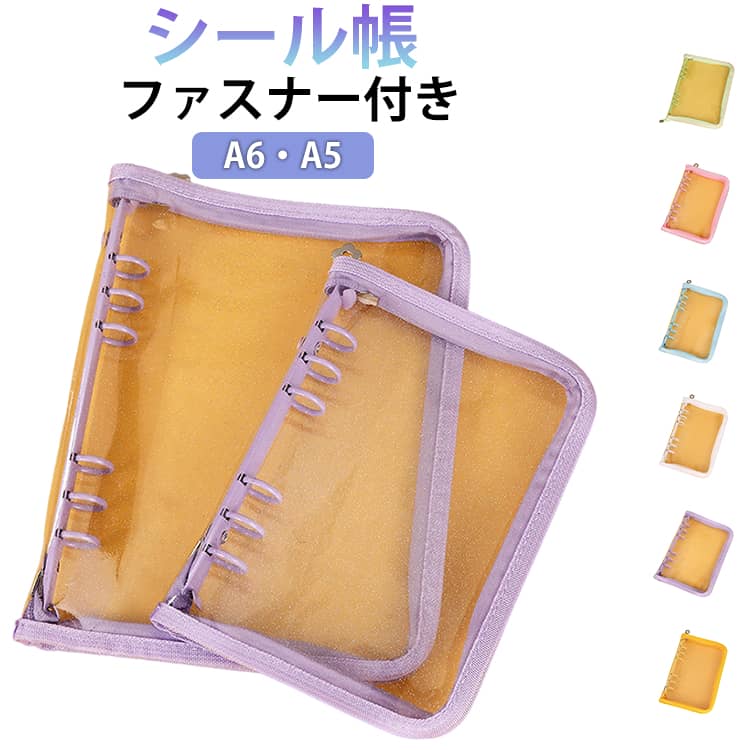 ファスナー付き シール帳 A6 A5 クリアバインダー 全6色 透明 穴開きシート シール手帳 シール台紙 手帳 シール 交換 ぷくぷくシール フィルム バインダー 6穴 女の子 クリア シ はがせる
