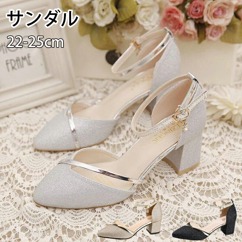 サンダル パンプス ブライダルシューズ 痛くない ポインテッドトゥ ストラップ ヒール 5.5 レディース 花嫁 太ヒール 美脚 パーティー 母の日 プレゼント 結婚式 謝恩会 演奏会