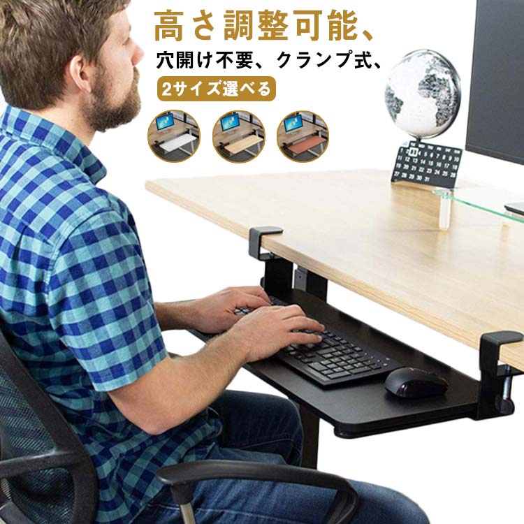 穴開け不要 テレワーク PCデスク 後付け 高さ調整可能 2サイズ×4色 フルキーボード クランプ式 木製 クランプ 在宅勤務 在宅ワーク キーボードトレイ キーボード リモートワーク