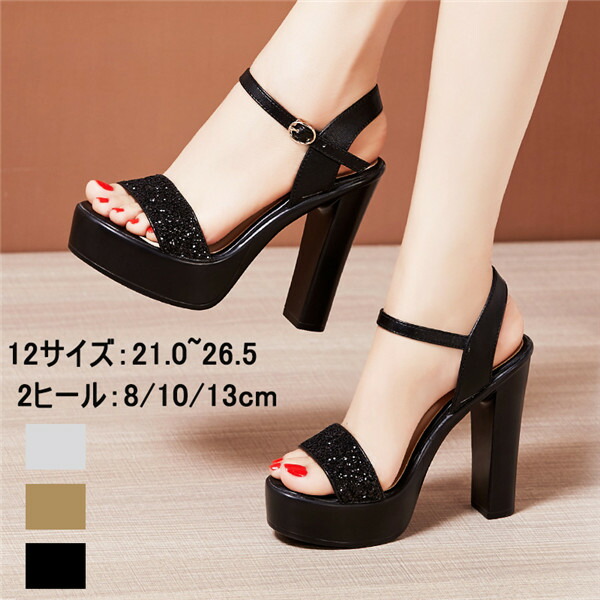 12サイズ サンダル 厚底 チャンキーヒール 厚底サンダル レディース かかと ヒールサンダル アンクルストラップ 大きいサイズ ストーム ヒール8 10 13cm 小さいサイズ 女性 大人 ブラ 靴