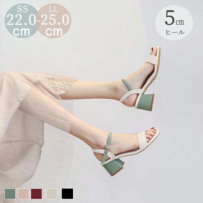 サンダル レディース 疲れない きれいめ ストラップサンダル 太ヒール ヒール5cm ミドルヒール コンフォートサンダル 歩きやすい 夏 靴 かわいい おしゃれ グリーン ベージュ レッド ブラッ 緑