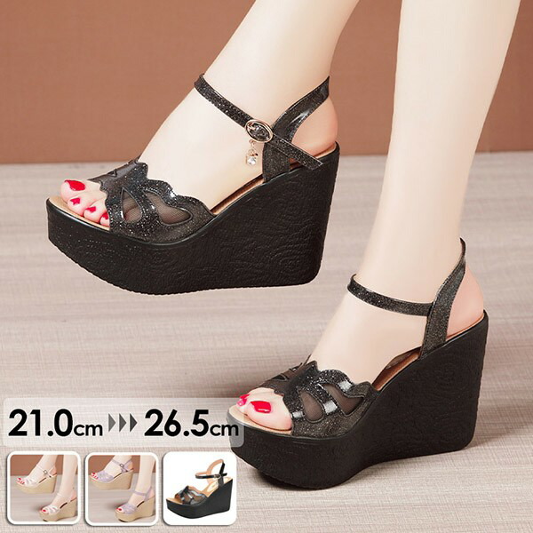 ウェッジソール サンダル 厚底サンダル ヒール11cm ストラップ アンクル オープントゥ 厚底 ベルト 夏 疲れにくい ウエッジソール 小さいサイズ 大きいサイズ かわいい コンフォート