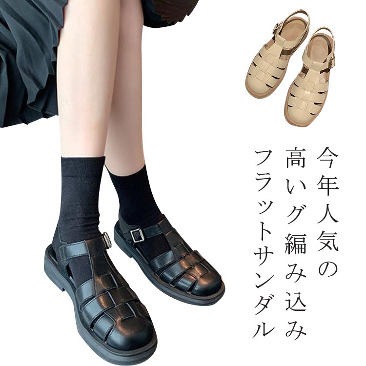 サンダル グルカサンダル レディース 編み込み ストラップ フェイスレザー PU 合皮 ラットサンダル ローヒール 厚底 前詰まり 春夏 軽量 ぺたんこ 歩きやすい 滑らない 涼 履きやすい