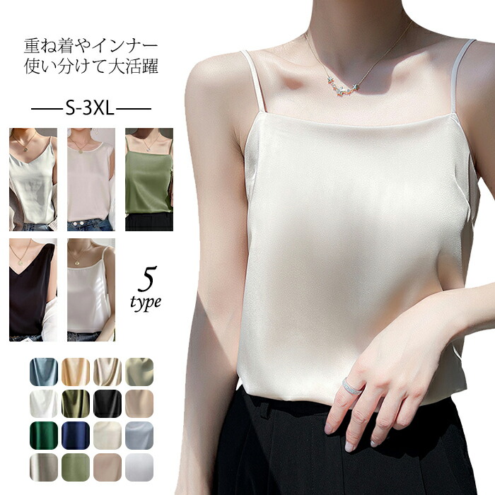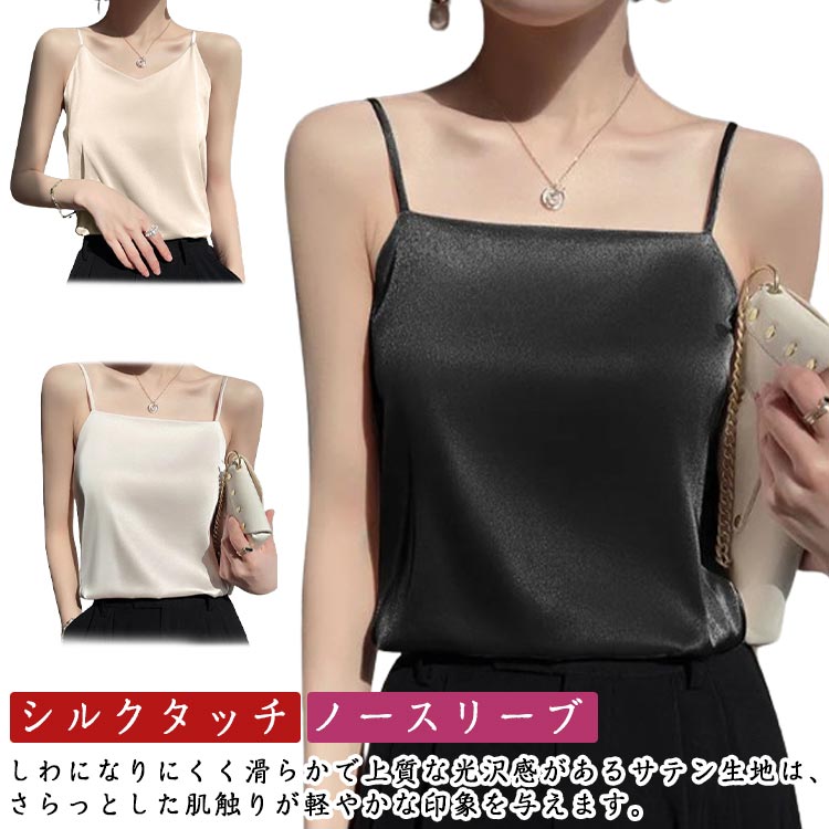 シルクタッチ キャミソール インナー レディース サテン タンクトップ チューブトップ ノースリーブ V Uネック トップス シンプル 吸汗 速乾 ス サテンベスト