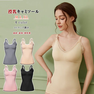 授乳ブラキャミソール マタニティキャミ ストラップオープン 片手で簡単授乳 ノンワイヤー 薄い 軽い 柔軟 高弾力立体カップ パッド付き 優しく包んでしっかりフィット 下垂れ M L X 横流れ防止