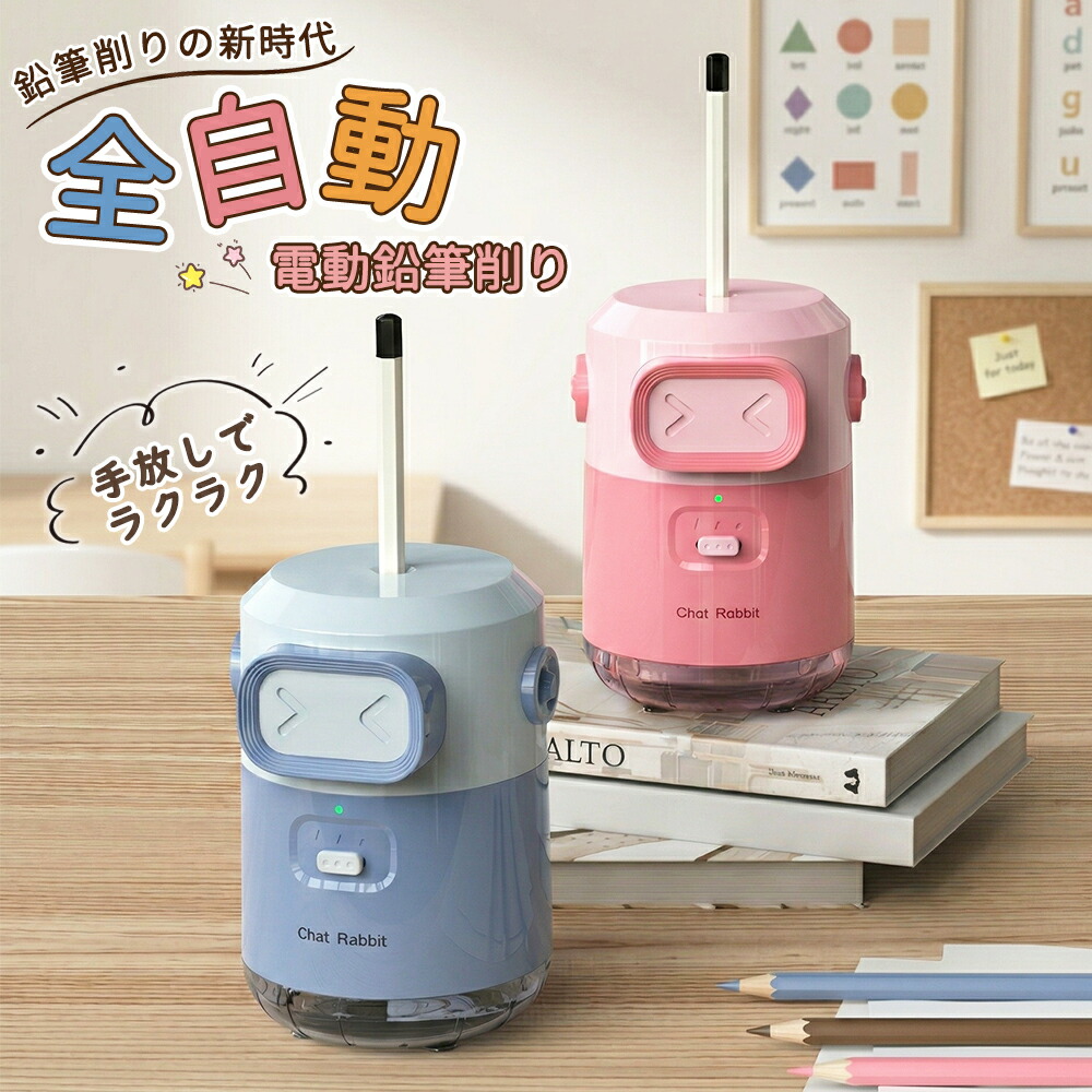 電動鉛筆削り えんぴつ削り 鉛筆 えんぴつけすり えん筆削り ロボット ピンク ブルー 可愛い デザイン 女の子 男の子 小学校 小学生 入学 お祝い