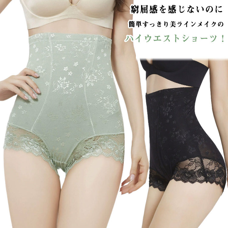 補正下着 ぽっこりお腹 ショーツ 下着 ガードル ハイウエストショーツ 補正ショーツ レース レディース ヒップアップ 引き締め お腹引き締め ボディシェイパー すっきり ぺたんこお腹 スリ 矯正下着