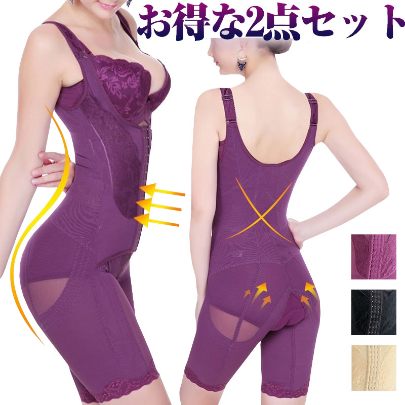 お得2点セット メール便送料無料 お得2点セット ボディスーツ カラフル スリーインワン ダイエット 引き締め コルセット 補正下着