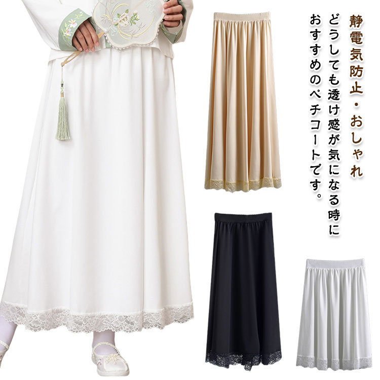 裾レース スカート ペチコート ぺチスカート レディース 透け対策 静電気防止 透け防止 カジュアル ゆったり インナー レイヤード インナースカート 体型カバー 透けない 和装 重ね着