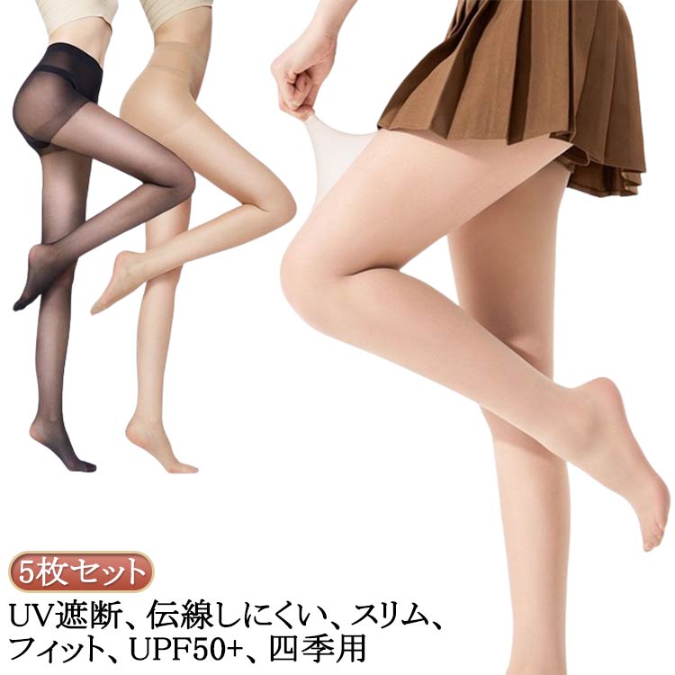 UVカット 5枚 UPF50+ 四季用 ストッキング ゴルフ uv 日焼け対策 UV遮断 春夏 スリム フィット パンティストッキング 夏 秋 締め付けなし