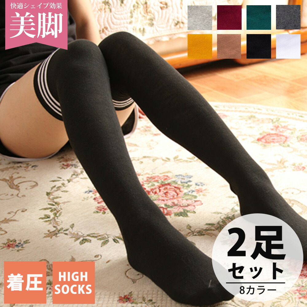 2足セットニーハイソックス ストッキング 靴下 レディース 女子高生 ギャル 美脚 コスプレ 制服小物 ロリ系 JK 無地 通学 通学フリーサイズ ニーハイソックス サイハイソックス 通勤