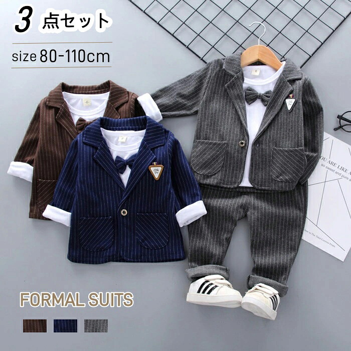 スーツ 男の子 子供服 フォーマルスーツ ジャケット 蝶ネクタイ 3点セット 上下セット ストライプ 七五三 子供スーツ フォーマル ベビー 入学式 卒業式 入園式 赤ちゃん