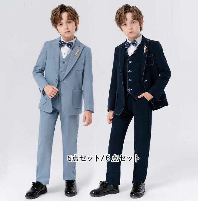 キッズスーツ 男の子礼服フォーマルジャケットジレベスト 発表会 無地 紳士服 春秋子供スーツ ピアノ結婚式 入学式 卒業式 礼服 男の子 舞台演出スーツ 5点セット 6点セット フォー タキシード4点