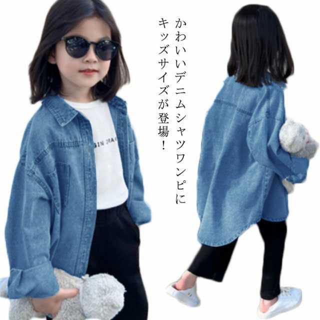 キッズ 90 女の子 シャツワンピース デニム チュニック ブラウス デニムシャツ カジュアルシャツ 110 ゆったり 無地 羽織り 薄手 前後差 ロング 120 130 1 100
