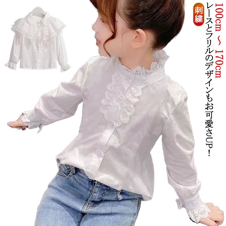 送料無料 フォーマルシャツ 100 110 120 130 140 150 160 170 子供服 ブラウス レース 女の子 シャツ 白 シャツ おしゃれ