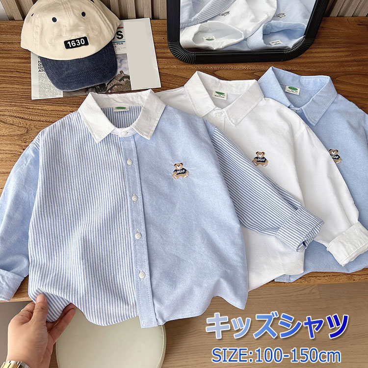 キッズ シャツ 長袖 子供 男の子 フォーマル ブラウス 綿 おしゃれ 春 秋 冬 入学式 卒園式 入園式 子供服 発表会 卒業式 結婚式 七五三 角襟 ホワイト 100 110 12 ブルー